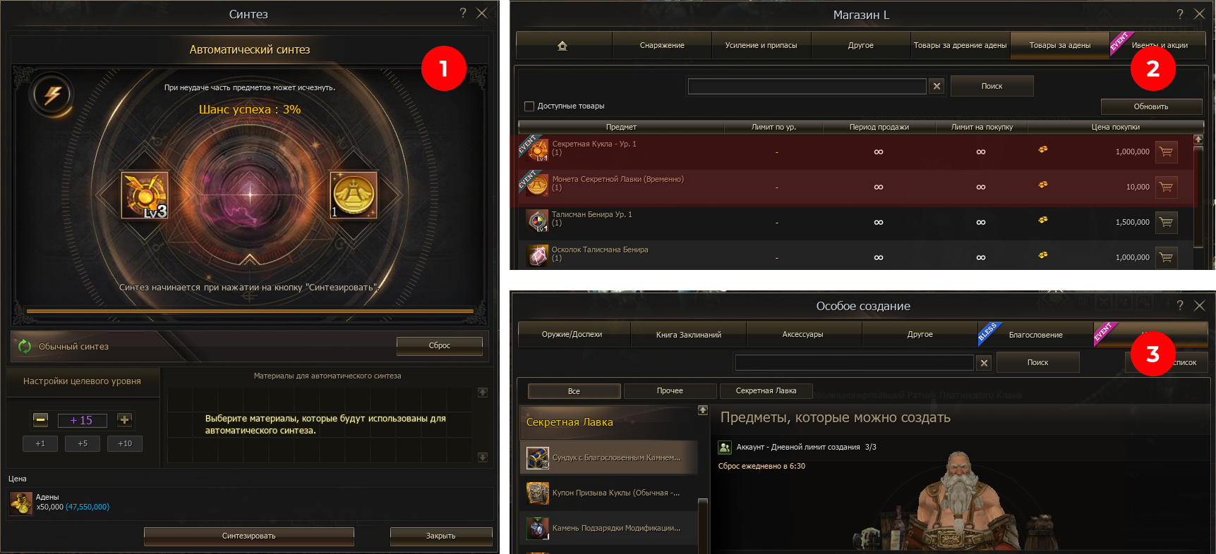 Монета Секретной Лавки (стоимость одной монеты 10,000 адены) (2 на скриншоте)